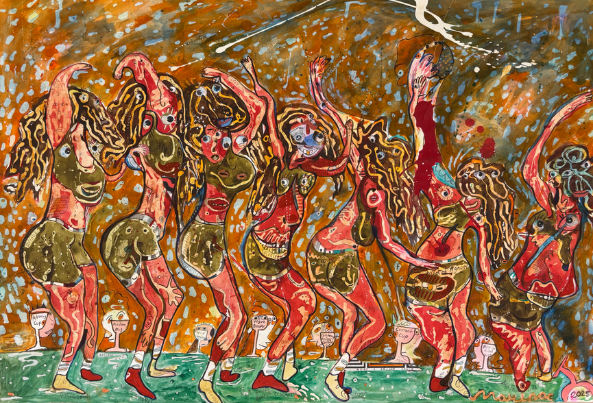 Rolling logs, twisters, teeter boards, moving floors, whistle traps, cage maze, shuffleboard, crash bumper, lily pads. It’s the early 20th century, and you’ve just walked into America’s playground; the Funhouse. Spawning from the World’s Columbian Exposition of 1893 in Chicago, the American Carnival would soon explode into a kaleidoscope of wonder and oddity, bringing a yearly spectacle to small towns and cities alike. Before evolving into today’s neon-lit fever dream, the funhouse, a component of the traveling carnival, was a hands-on labyrinth of illusions–a hall of mirrors, uneven floors, dark corridors, sound effects; a humble wooden structure where inside, nothing was as it seemed. As the carnival was popularized, it began to nurture a home for those marginalized by American society. Carnival worker crews welcomed international and seasonal workers, and ‘freak shows’ took shape, forming experimental communities. Coney Island’s The Dreamland Circus Side Show offered stability to former circus acts, and legendary parks like Steeplechase, Luna, and Dreamland became a fun and affordable escape for people from all different walks of life. Fun House, presented by Van Der Plas Gallery, brings together two artists, Alejandro Caiazza and Doug Groupp, who explore the carnival’s paradox—both its whimsy and its madness. This exhibition captures the untamed spirit of American culture: the thrill of spectacle, the search for belonging, the beauty of the absurd. It celebrates the dreamlike allure of the funhouse while offering a space for nostalgia, raw emotion, and the echoes of a more hopeful time. Alejandro Caiazza (b. 1972) was born in Santa Fe, Argentina, and raised in Ciudad Guayana, Venezuela. He earned a BFA in Architecture and Fine Arts from Jose Maria Vargas University in Caracas. After relocating to Paris in 2000, he studied at L’Ecole Superieure des Beaux-Arts under mentor Ouanes Amor. Today, Caiazza is living and working in New York City. His mixed-media collages and paintings blend neo-expressionism and art brut, evolving as he learned to adapt through intercontinental travel and relocation. His work often plays into his environment, incorporating real objects, and explores themes around animals, fun, politics, everyday characters, and emotions such as love, madness and death. With humor and bold colors, his pieces are both playful and emotionally intense. Doug Groupp, better known as Clown Soldier (b. 1970), is an artist born in Queens, NY. Groupp grew up in Rockland County and graduated from SUNY Purchase with a BFA, and has worked in many mediums throughout his career, including Oil, Acrylic, Gouache, Watercolor Painting, Frottage, Collage, Screen Printing, Sculpture, and Street Art in the forms of wheat paste, murals and Ad Takeovers. Groupp’s work is rooted in a whimsical interpretation of his own sense of humor, often unfolding in unexpected ways. Deeply inspired by the history and eccentric energy of Coney Island, he has developed a distinct artistic language over decades. His earlier work drew from satirical narratives, while his more recent pieces lean into abstraction, using hieroglyphic-like shapes and forms. Working in an autonomous and intuitive way, Groupp creates art that feels spontaneous, never overly contrived. His use of humor and playfulness remains a constant, revealing layers of meaning that emerge over time. Like a fun house, the work of Alejandro Caiazza and Doug Groupp offers a new experience with every encounter. Their art invites viewers into a world where humor and nostalgia intertwine with the strange and surreal. Through bold compositions and playful juxtapositions, this exhibition revives the spirit of the carnival as a haven for the eccentric, the outcast, and the wandering. Just as the funhouses of the past provided a distorted yet honest reflection of American life, this exhibition rejects the manufactured horrors of today’s political circus, reminding us that in distortion, we often find the clearest reflection of ourselves.